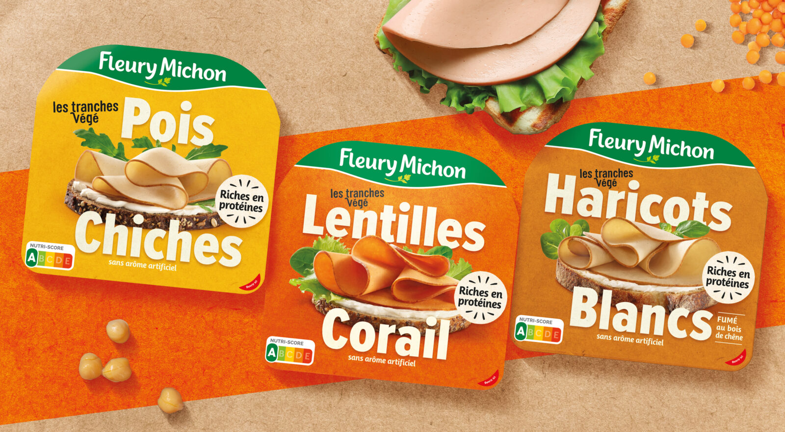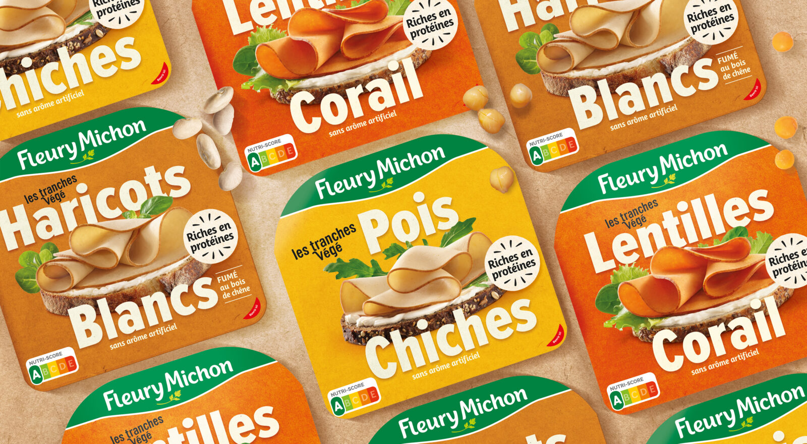 • Au lieu d’une promesse de goût s’étalonnant sur le plaisir carné, nous avons opté pour l’affichage transparent de la naturalité et de la polysensorialité des légumineuses ; lentilles corail, haricots blancs et pois chiche clament haut et fort leurs couleurs et leurs saveurs, et ne laissent aucun doute sur la composition des recettes, sans marqueurs d’ultra transformation.