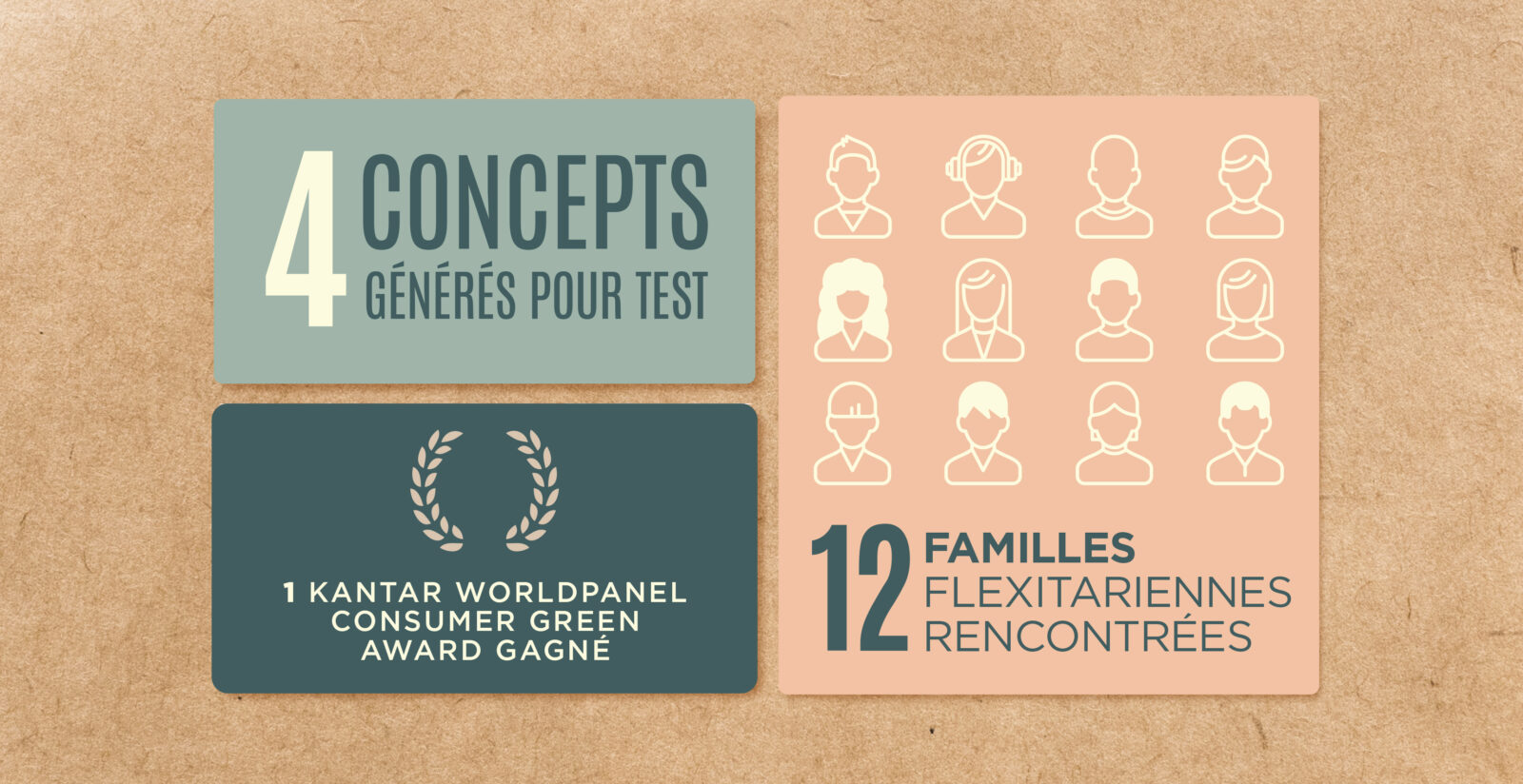 Issus d’un processus itératif de design thinking, en collaboration avec 16 familles flexitariennes, le positionnement et l’idée créative finale reflètent l’enjeu de casser les codes du « meat analog » dominant le marché :